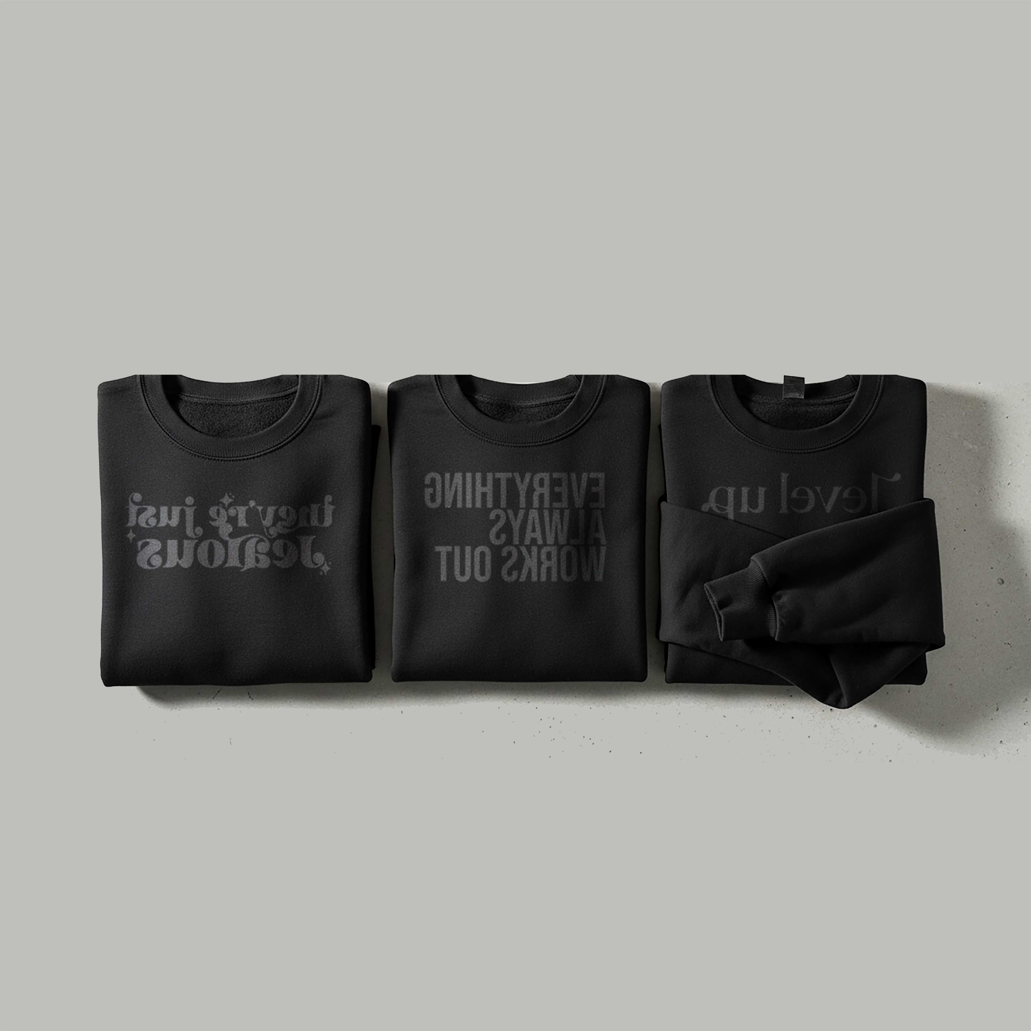 check out our "just for you" reverse affirmations. Why in reverse? Because we all need a little reminder on the positive self speak. Our reverse printed designs are seen legibly when you peek in the mirror or snag a selfie.